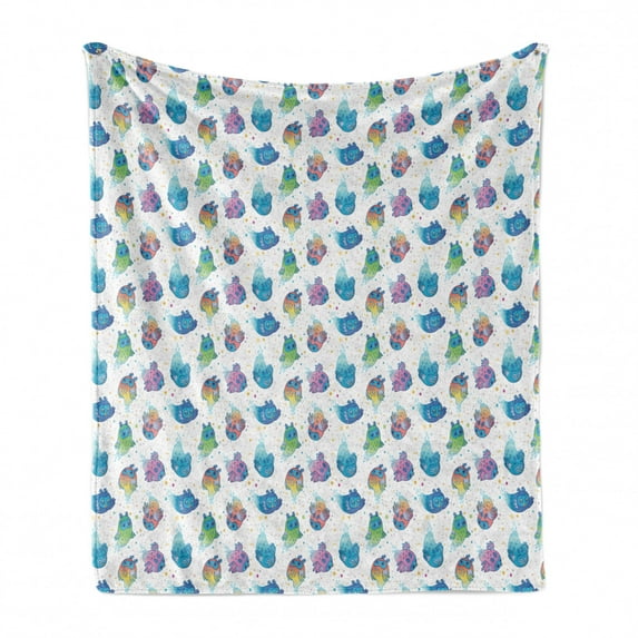 Hero image 0 of Owl Soft Flannel Fleece Throw Blanket, Fantasy World Themed Ghost Creatures with Colorful Dots and Stars, Cozy Plush for Indoor and Outdoor Use, 50" x 70", Deep Sky Blue Multicolor, by Ambesonne, 0 of 5