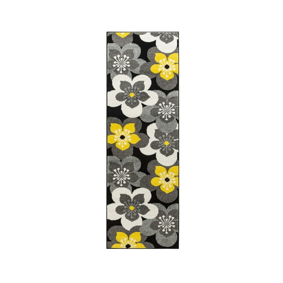 Oxford Collection Rugs - Yellow, Black, Grey, White, Modern Floral Design Premium Soft Area Rug(2'x7' Runner)
