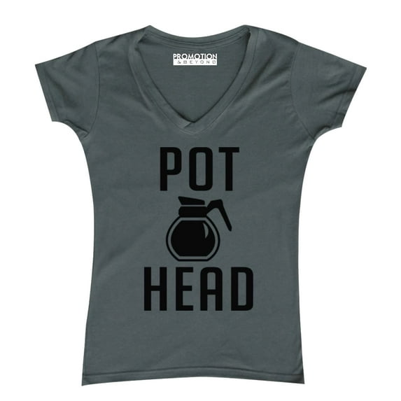 P&B Coffee Pot Head Women's V-neck, Charcoal, M