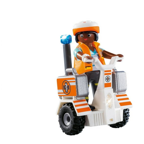 - Medic quickly rides on the balance racer to attend to the emergency call.