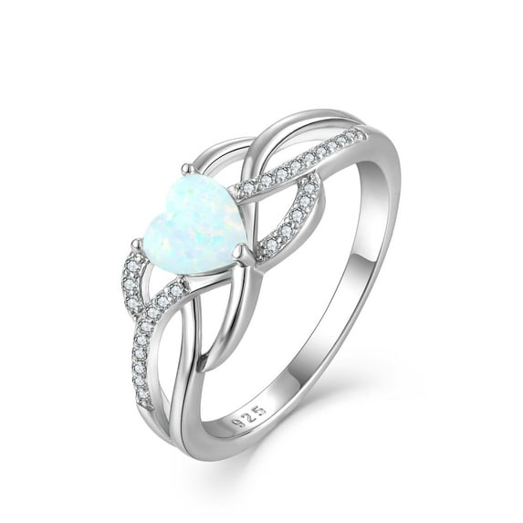 Hero image 0 of PYNZY Celtic Knot Rings Infinity Twisted Rings, 925 Sterling Silver Heart Statement Rings White Opal Jewelry for Women Gift Size 7, 0 of 6