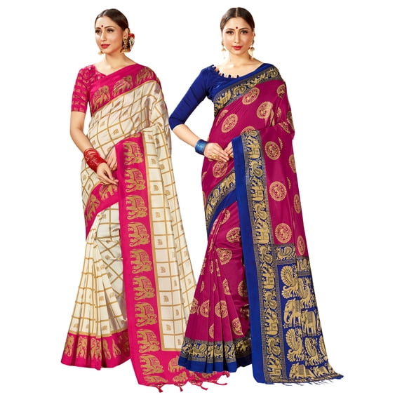 Hero image 0 of Pack of Two Sarees for Women Mysore Art Silk Printed Indian Wedding Saree || Diwali Gift Combo, 0 of 3