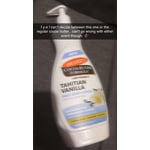 I have always loved Palmers Cocoa Butter the original lotion it's always been good on my skin I am super sensitive to everything since I have psoriasis and eczema it's the only lotion that seems to truly work for me but when I saw this Tahitian vanilla I wanted to try but scared what if it would bother me however I'm so happy I went for it because not only does it not bother my skin but it smells so good the Tahitian vanilla is like a vanilla ice cream or vanilla pudding. I was still able to smell the vanilla for a few hours after applying. I don't agree with high reviews on a lot of items but this deserves 5 stars