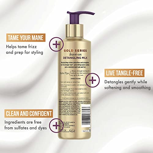 Pantene Gold Series Detangling Milk Hair Treatment for Curly Hair, Natural and Textured Hair, 7.6 Fl Oz – Leave-On Hair Detangler Infused with Rich Argan Oil, Dye and Sulfate Free Formula