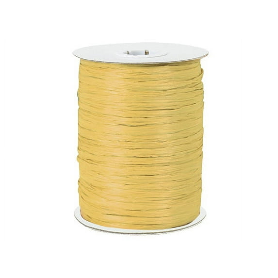 Create Stunning presentation packages with this raffia ribbon. Raffia Ribbon or Wraphia Ribbon is synthetic and packaged on 100. Raffia without the mess! It's so simple to use and looks great on any package. Ribbon is twisted at 1/4" width and can be pulled apart to 1-1/4" width. Made in the USA from imported materials.