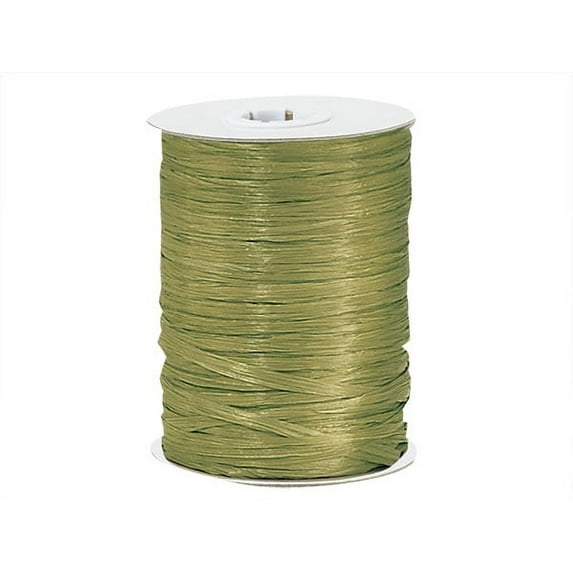 Create Stunning presentation packages with this raffia ribbon. Raffia Ribbon or Wraphia Ribbon is synthetic and packaged on 100. Raffia without the mess! It's so simple to use and looks great on any package. Ribbon is twisted at 1/4" width and can be pulled apart to 1-1/4" width. Made in the USA from imported materials.