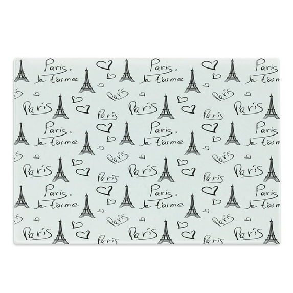 Hero image 0 of Paris Cutting Board, World Capital City of Love French European Hand Drawn Sketch Eiffel Illustration, Decorative Tempered Glass Cutting and Serving Board, Large Size, Black White, by Ambesonne, 0 of 1