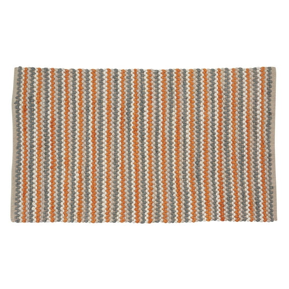 Combine a subtle pattern with warm colors for a refreshing, lively flooring addition. Provides a comforting living room, kitchen, or dining room atmosphere for guests and loved ones delivered by the soft and protective essence of this decorative scatter rug. The vibrant orange color paired by the cream and gray shades in a woven stripe design that will blend with a variety of interior home styles to reuse as a complementary seasonal or casual home statement accessory.
