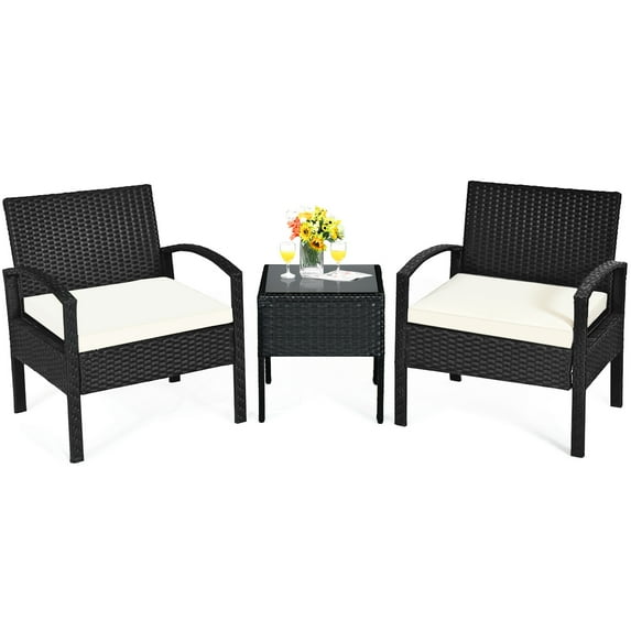 664.6 out of 5 Stars. 66 reviewsShipping, arrives in 3+ daysCostway 3 Pieces Rattan Patio Furniture Set with Cushion Outdoor in Black $109.99 Was $179.00