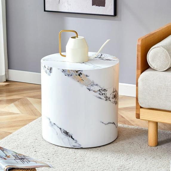 cylindrical table is a wonderful furniture option that combines style and usability. its white shade and composition give it a modern and look. measuring 16.11 inches in depth, width, and height, and weighing 15.97 lb, it's a convenient and choice. package comes in at 21.26 inches in depth, 20.87 inches in width, and 19.69 inches in height, weighing 20.72 lb. cylindrical shape provides stable support and effortlessly blends in with various interior styles. this table can be utilized as a coffee table for a laid-back moment, a small dining table for a casual meal, a workbench for your projects, or a makeshift writing desk for your thoughts. fashionable pattern design adds a charming and fashionable touch to your living area. keep in mind that actual product color may vary slightly based on color settings of your screen. : wonderful option, style and usability, modern , convenient choice, space efficiency, stable support, various styles, laid-back moment, casual meal, project workbench, thought writing, charming touch, fashionable addition.