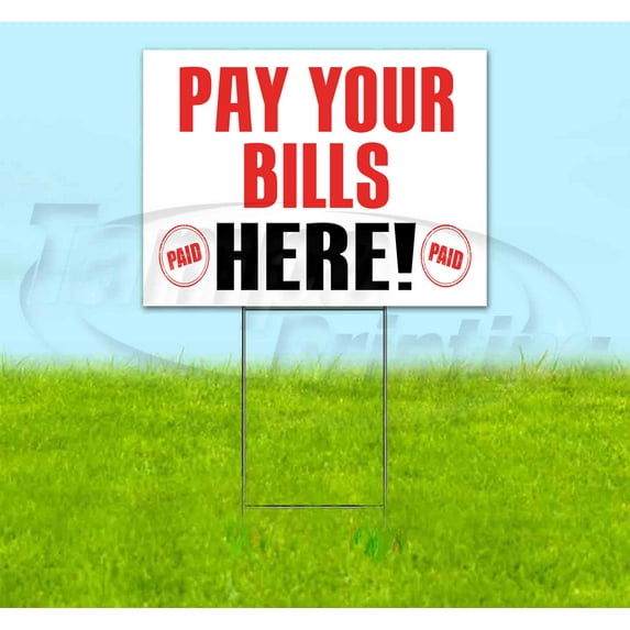Pay Your Bills Here (18" x 24") Yard Sign, Includes Metal Step Stake