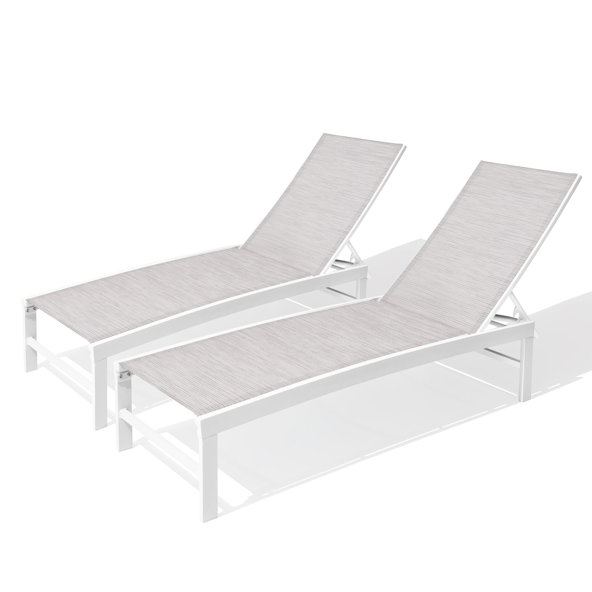 Pellebant White &Gray Patio Outdoor Chairs Aluminum Adjustable Lounge Chaise (Set of 2)