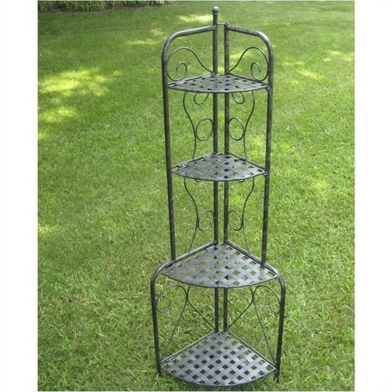 Made from premium powder coated iron; All-weather and water resistant protective finish; UV light fading protection against harsh outdoor sunlight; Beautiful 4-tier display for extra storage space; Folding bakers rack design for easy carry and transportation; Perfect for indoor and outdoor use; Comes in a beautiful antique black distressed finish; Part of the Collection . Specifications: Overall dimensions: 54" H x 17" W x 17" D; Product weight: 15 lbs. .