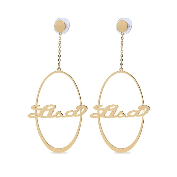 A classic beauty style worthy of royalty! Bring out the Princess in you with our very popular Script Name Earrings. This charming piece features a clean, elegant script adorned by a lovely design that can be personalized for a truly unique style. For many, this design serves as their first or favorite name earrings, as it is the most authentic replica of the iconic nameplate earrings we've all come to know and love. This popular style has become a must-have for any jewelry lover and you won't want to leave it out of your collection.