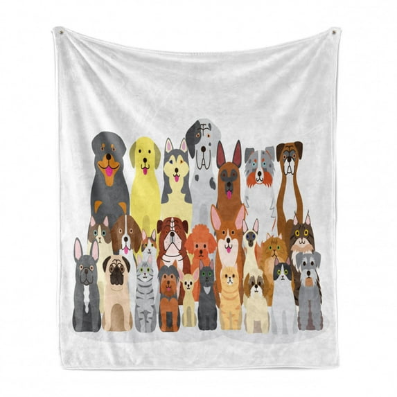 Hero image 0 of Pet Lover Soft Flannel Fleece Throw Blanket, Dogs and Kittens in Disparate Sizes and Shapes Sitting Animals, Cozy Plush for Indoor and Outdoor Use, 60" x 80", Multicolor, by Ambesonne, 0 of 6