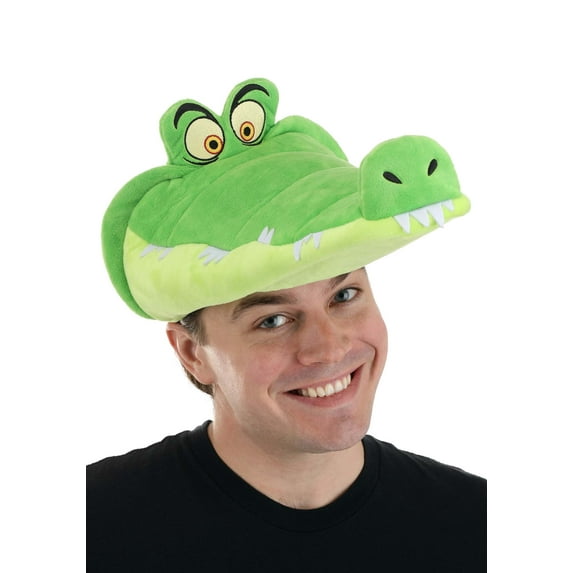 Tick-Tock Peter Pan Plush Hat Time Is Ticking It was the tastiest snack you've ever had: A pirate captain's hand. Who knew that they were such a delicacy? But it's been so long since you gulped it down that the time is running out until your stomach starts rumbling so hard that it finally drowns out the alarm clock you also swallowed (not as tasty). Ready or not, Captain Hook - here you come!? Product Details Be a pirate captain's worst nightmare in this officially licensed Peter Pan Tick-Tock Plush Hat! The stuffed green hat is made of super-soft fabric that is shaped to look like Tick-Tock's snout. White felt fangs and embroidered details including nostrils and crocodile eyes make this hat a costume all by itself.? Neverland Nemesis Stalk the jungles of Neverland in search of your next snack! If you can't catch Captain Hook before the hunger pangs catch up to you, maybe Smee would do in a pinch.?