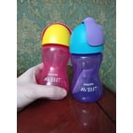 The Philips Avent My Bendy Straw Cup 10oz is the ideal choice for the growing, active toddler. This dentist recommended cup** was developed alongside experts in order to make it our best straw cup possible and one that allows for healthy oral development.* The cup’s contoured shape and anti-slip texture grips make it easy for little hands to hold the cup. The 10oz cup is the perfect size to keep your child hydrated throughout the day and through active times. With this straw cup, your child will be able to drink ‘til the very last drop thanks to the Philips Avent unique bent-straw– the lower part of the straw is elongated and bends forward ensuring the straw easily reaches the cup’s contents and allows the development of a natural drinking position. The cup has an integrated anti-leak valve to prevent spills (even when the cup is open!) and the flip-top protects the straw and prevents leakage while on-the-go. Our advanced technology ensures that the cup is leak-proof all of the time, and comes with a 100% Leak-proof Money Back Guarantee in the case it should not deliver on this promise. For your convenience, this product is BPA-Free, dishwasher safe and compatible with Philips Avent Natural and Anti-Colic bottles & all other sippy cups. Mix and match our bottle and cup parts, and create the product that works for you, when you need it! *90% of 200 U.S. pediatric dentists agree that the design of the Philips Avent straw cup allows healthy oral development. **86% of those dentists would recommend this Philips Avent straw cup. What's in the box: 2 My Bendy Straw cups