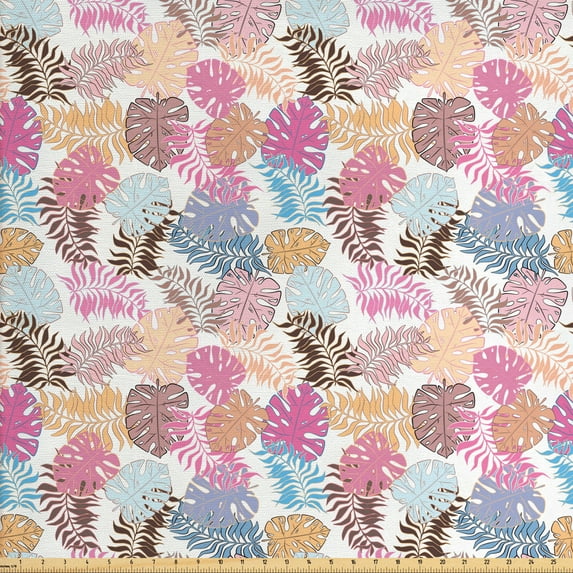 Hero image 0 of Philodendron Fabric by the Yard Upholstery, Hawaiian Garden Foliage Pattern with Abstract Colorful Leaves in Doodle Style, Decorative Fabric for DIY and Home Accents, Multicolor by Ambesonne, 0 of 4