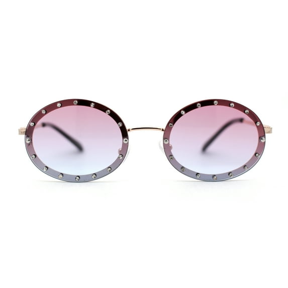 Pimp Rhinestone Frame Oval Rimless Metal Rim Sunglasses Gold Purple Blue