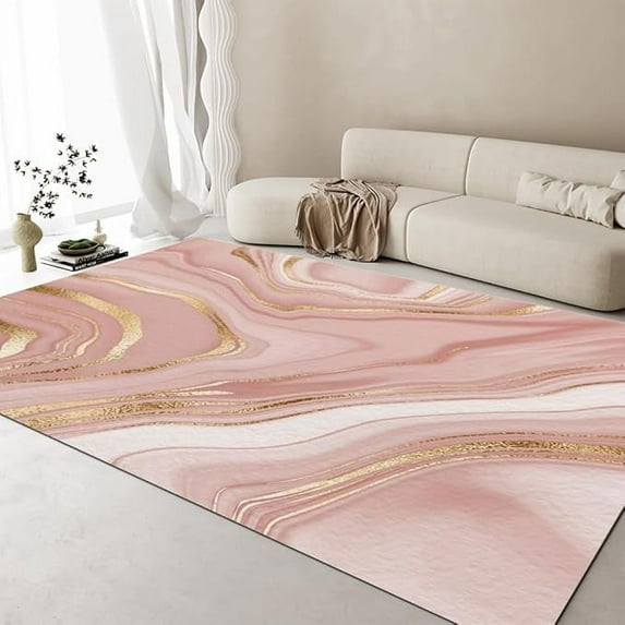 Pink Luxury Marble Indoor Carpet, Abstract Rose Gold Water Ripples Area Rug, Machine Washable Rugs For Living Room Dining Room Bedroom Kindergarten Classroom Reading Room 5 x 6ft