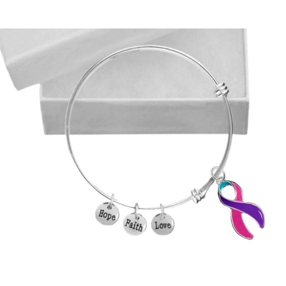 Pink, Purple & Teal Ribbon Charm Motivational Retractable Bracelets