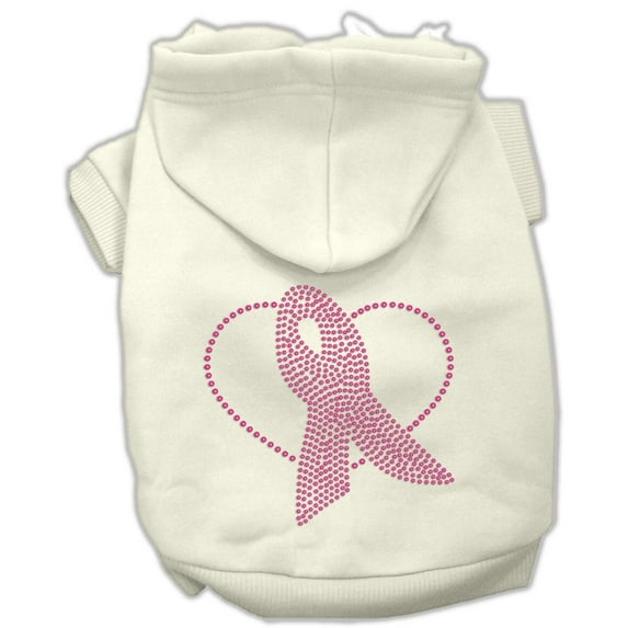 Pink Ribbon Rhinestone Hoodies Cream XS (8)