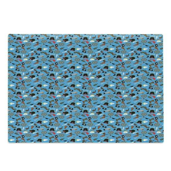 Hero image 0 of Pirates Cutting Board, Piratical Accessory Ornament Vintage Buccaneer Sailor Elements Illustration on Blue, Decorative Tempered Glass Cutting and Serving Board, Large Size, Multicolor, by Ambesonne, 0 of 1