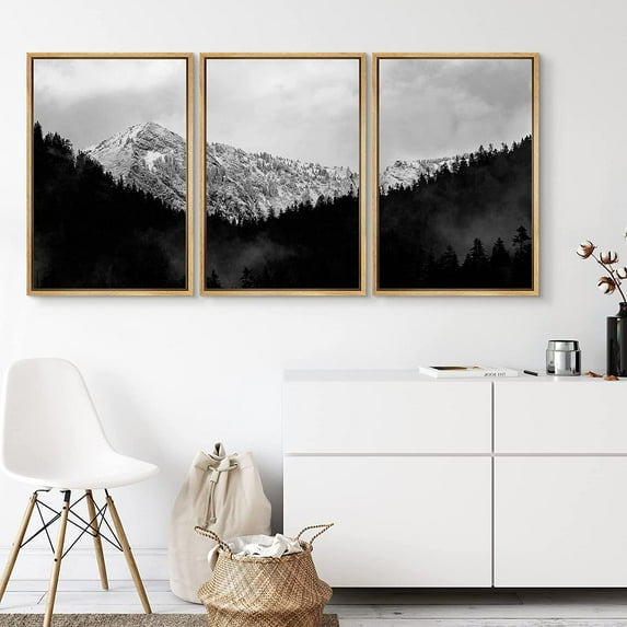 Hero image 0 of PixonSign Canvas Print Wall Art Set Dark Forest Covers The Snow Mountain Nature Wilderness Photography Realism Southwest Landscape Ultra Black and White for Living Room, Bedroom, Office - 16"x24"x3, 0 of 5