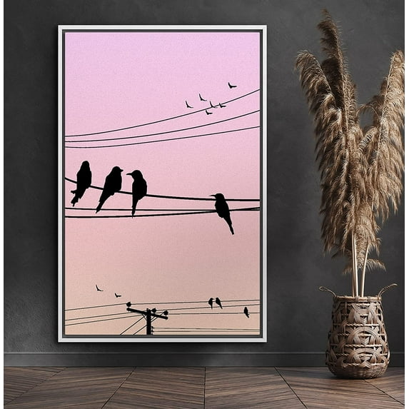 Hero image 0 of PixonSign Framed Canvas Print Wall Art Pink and Purple Sky with Birds Animals Wildlife Illustrations Modern Art Minimalist Scenic Fun Multicolor Ultra for Living Room, Bedroom, Office - 16"x24" White, 0 of 5