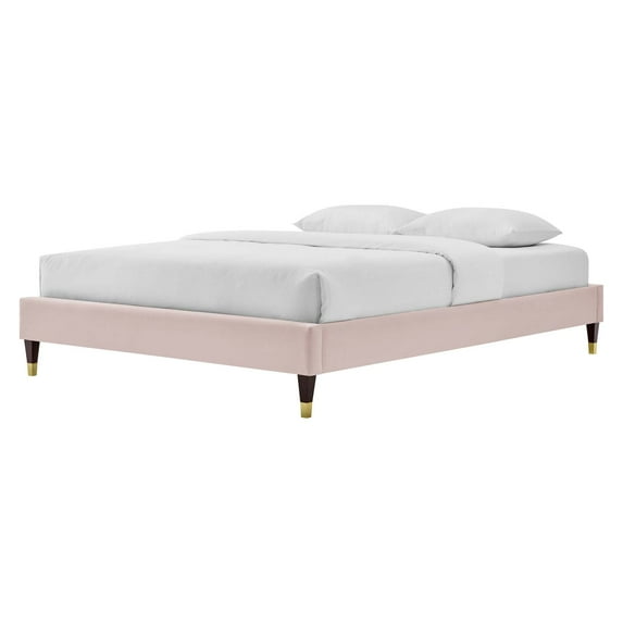 Hero image 0 of Platform Bed Frame, Full Size, Velvet, Pink, Modern Contemporary Urban Design, Bedroom Master Guest Suite, 0 of 7