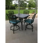- Set includes a 42" square cast-top high-dining table and 4 tall swivel rockers with seat cushions