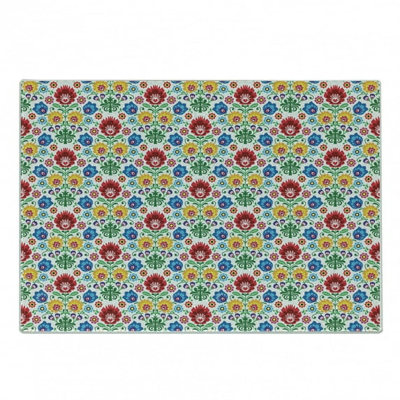 Hero image 0 of Polish Folk Art Cutting Board, Flourish Motif with Colorful Flowers and Leaves Kaszuby Region, Decorative Tempered Glass Cutting and Serving Board, in 3 Sizes, by Ambesonne, 0 of 2