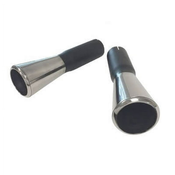 Get increased exhaust flow with Scott Drake Max-Flow exhaust tips. These high performance tips are modeled after the factory high-flow 65-66 GT exhaust tips, but without the decorative stamped louvered exit for maximum flow. They feature large diameter 2" straight mild steel tubing painted black for corrosion protection. The tubing can easily be expanded up to 2.25" to connect with a custom exhaust system. A pair of show quality polished stainless steel double-wall tips with precision fit cones are welded on to finish the look. Clamps sold separately. These are not a direct fit with original 65-66 GT exhaust systems.;