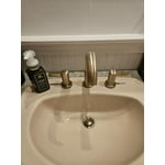 - : Faucet has a champagne bronze color with a warm, metallic tone.