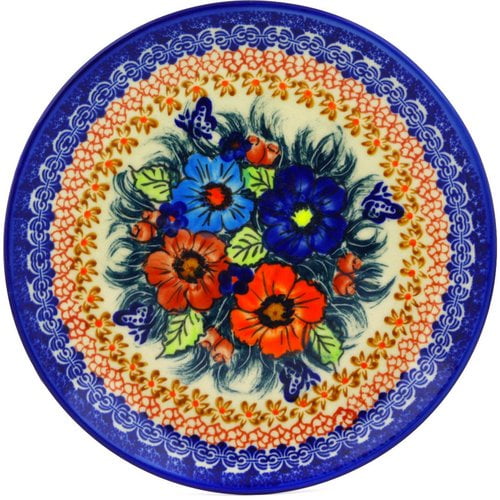 Features: -Hand made and hand painted in the heart of Europe in the town of Boleslawiec. -Premium quality European stoneware certified to be quality 1 selection. -Made out of stoneware, painted by hand using sponges and brushes. -Microwave, dishwasher, freezer, and oven safe up to 480°F. -Intended for everyday use, long lasting, colors will never fade. -Lead and cadmium free, safe to use with food. Shape: -Round. Material: -Ceramic. Theme: -Nature. Holiday / Occasion: -No Holiday. Dimensions: Overall Width - Side to Side: -7.6". Overall Height - Top to Bottom: -1.1". Overall Depth - Front to Back: -7.6". Overall Product Weight: -0.85 lbs.