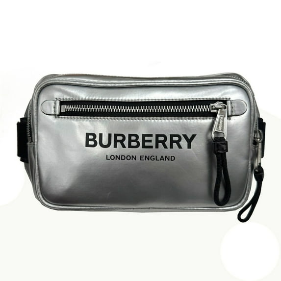 Pre-Owned BURBERRY Burberry Body Bag Waist Shoulder Metallic Silver Leather Men Women (Good)