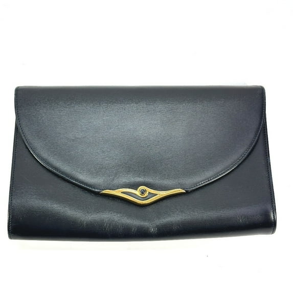 Pre-Owned CARTIER Vintage Sapphire Line Bag Pouch Clutch Leather Men's Women's Navy (Fair) (SKU: GZl18nik)