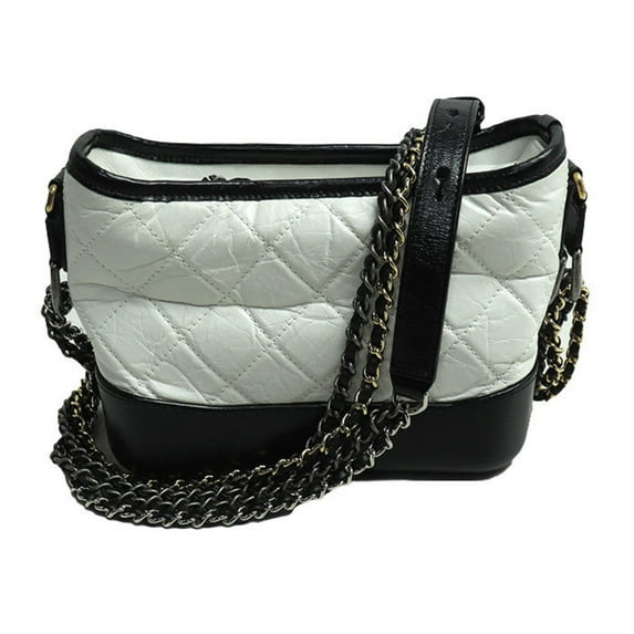 Pre-Owned CHANEL Gabrielle de Chanel Small Hobo Shoulder Bag White Black A91810 Calfskin Women's (Good) (SKU: GZl182q6)