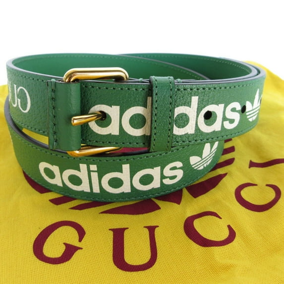 Pre-Owned GUCCI Belt x adedas Leather Metal Green White Gold Men Women 702277 s0591a (Good) (SKU: GZl18urk)
