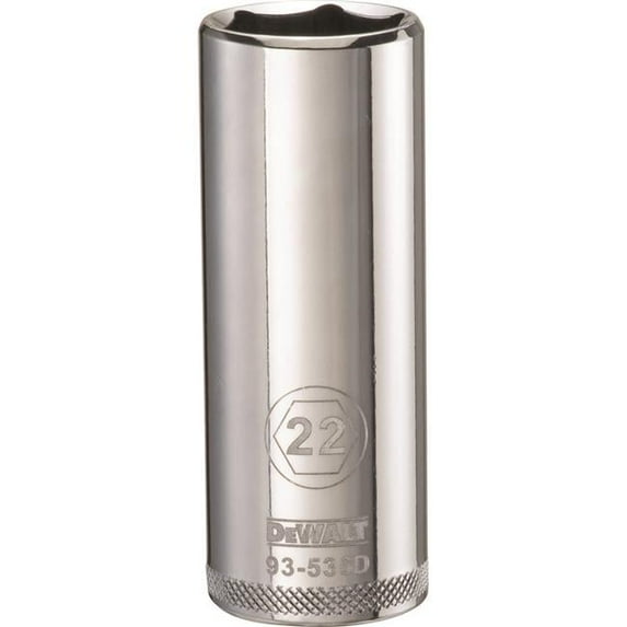1/2" Drive, 22 mm, Deep, 6 Point, Socket, Polished Chrome Vanadium Steel For Rust & Corrosion Prevention & Protection Against Chipping & Flaking, Hard Stamped, Large Size Markings For Easy Identification & Durability, Direct Torque Technology Provides Contact With The Flat Surface Areas Of The Fastener, Full Lifetime Warranty.
