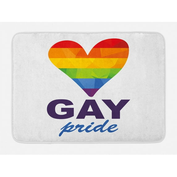 Hero image 0 of Pride Bath Mat, Polygonal Gay Rainbow Heart with Inscription LGBT Love Romance Culture Community, Non-Slip Plush Mat Bathroom Kitchen Laundry Room Decor, 29.5 X 17.5 Inches, Multicolor, Ambesonne, 0 of 2