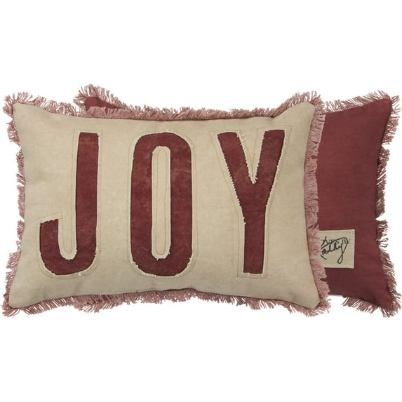 Primitives by Kathy Holiday Joy Cotton Throw Pillow, 15 x 10-Inch, Tan/Red