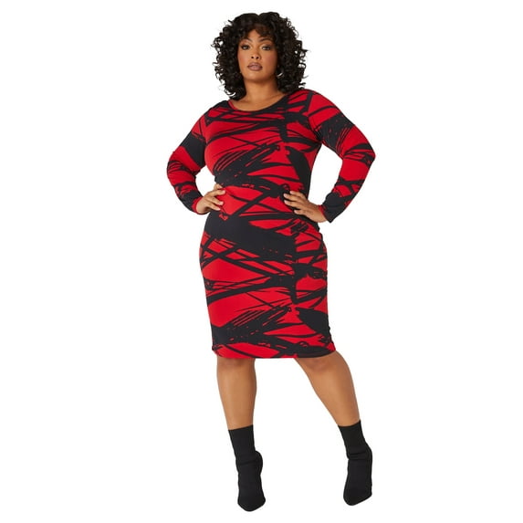 Hero image 0 of Ashley Stewart Printed Bodycon Dress, Equestrian Red, Size 18/20, 0 of 4