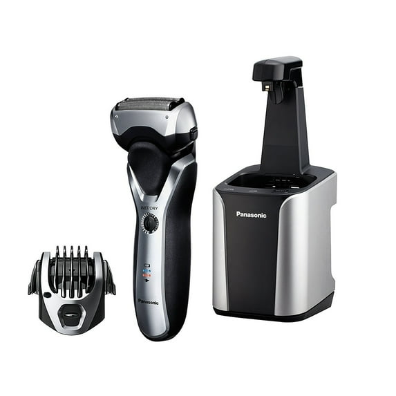 The Panasonic Arc3 ES-RT97-S Wet Dry men's electric razor combines pure shaving with the gentle comfort and convenience of multi-blade shaver precision. Nanotech blades, honed to an acute 30 degree angle cut whiskers more cleanly at the root. The shaving machine is designed with hypo-allergenic Multi-Fit Arc3 foils and a quick-pivot shaver head follows the contours of your face for a close, comfortable shave, even on the most sensitive skin. This Charge Retaining mens electric shaver is specially designed for outstanding results on all types of beards and thicknesses. And with the shaving of a high-performance 10,000 RPM motor, clip-on adjustable comb attachment and built-in, slide-up 45 degree trimmer, you'll enjoy a quicker, more satisfying shave or trim.Plus, with its 100% washable, wet dry versatility, you can confidently use the Arc3 shaving machine in the bath or shower, over the sink and on the go. Keep your electric shaver clean, charged and ready for the next use with an included, Automatic Premium Cleaning and Charging System. A convenient men razor travel pouch is included, too.Like all Panasonic shavers for men, blades and foil should be replaced when dull for the best electric shaver performance. Replacement Accessories: Foil (WES9087PC), Blade (WES9068PC)* Panasonic-quality mens electric razor and trimmer in one. The Arc3 men's shaver includes a 3-blade cutting system with precision-honed, ultra-thin 30° edge blades for fast, smooth electric shaving with outstanding closeness and comfort.* A five-setting comb attachment is included to transform the shaver into a trimmer; Slide-up 45° trimmer adds the perfect detail to mustaches and sideburns,* Stainless-steel Arc3 foils naturally follow individual facial contours, pivoting shaver head glides effortlessly over face, chin and neck.* Panasonic 10,000 rpm motor for consistent, streamlined shaving; Shave dry anytime or in the shower with foam or gel for wet dry convenience.* Premium Automatic Cleaning & Charging Station cleans, dries and charges the ES-RT97-S shaving machine with the touch of a button, keeping it fresh and ready for the next shave.Item Dimensions: 1.90" x 2.50" x 6.40"Item Weight: 3.10lbs