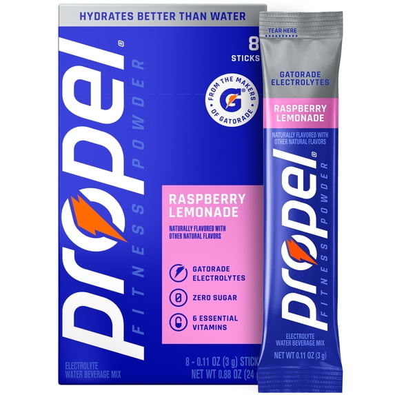 Propel Zero Sugar Raspberry Lemonade, On the Go Packs, Electrolyte Powder Drink Mix, 0.11 oz, 8 Count packetsPropel Electrolytes Water Beverage Mix Raspberry Lemonade 20 Oz x 8 CountPropel Electrolyte Water Beverage Mix Kiwi Strawberry 0 11 Oz X 8 CountPropel Powder Watermelon 8ct Box3 pack Propel Zero Sugar Grape On the Go Packs Electrolyte Powder Drink Mix 0 11 oz 8 Count packets3 pack Propel Zero Sugar Strawberry Kiwi On the Go Packs Electrolyte Powder Drink Mix 0 11 oz 8 Count Packets3 pack Propel Zero Sugar Raspberry Lemonade On the Go Packs Electrolyte Powder Drink Mix 0 11 oz 8 Count packetsPropel Electrolytes Water Beverage Mix Black Cherry 0 08 Oz X 8Propel Electrolytes Water Beverage Mix Grape 0 08 Oz X 8