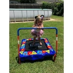 The Pure Fun Preschool Jumper Kids Trampoline with Handrail is ideal for playing and learning. The "ABC" padded cover makes it fun to bounce while encouraging a child's alphabet, color and shape recognition. The trampoline is also great to get children to begin becoming physically active in a fun way helping build balance, coordination and stamina. The Preschool Jumper is made to last with a steel frame, inclined padded handrail for increased stability. The spring system is covered with mesh and padding to create a safe, worry-free bouncing environment. Recommended for ages 3 to 7 and safety rated up to 75lbs. ASTM, TUV/GS and CE Certified for Safety.