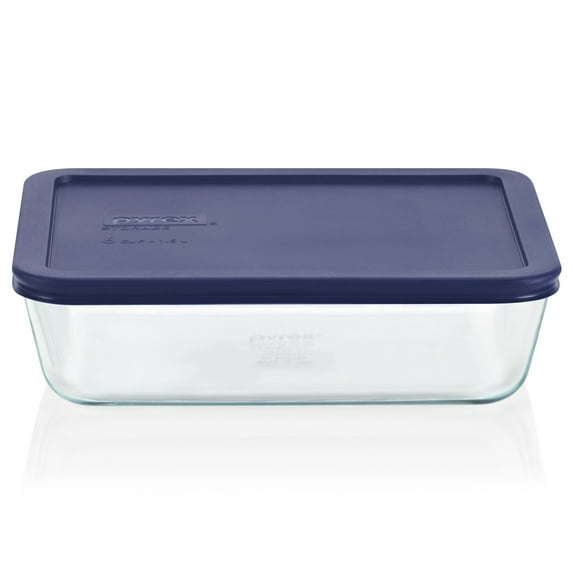 Pyrex 6-cup Rectangular Glass Food Storage Container with Blue Lid