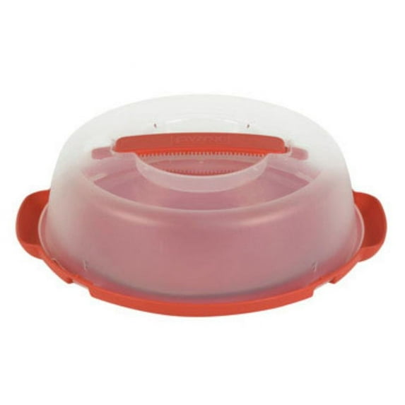The Pyrex pie plate portable makes it easy to take your homemade pie to any event. The easy carry handle makes transporting your delectable pie a cinch. The carrier base with easy grab handles also acts as a stylish serving tray, so you can serve up your pie with class.
