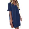 Hero image 0 of QIJIE Shirt Dress for Women V Neck Short Sleeves Solid Color Casual Flowy Summer Dresses(S-2XL) Dark Blue XL, 0 of 5