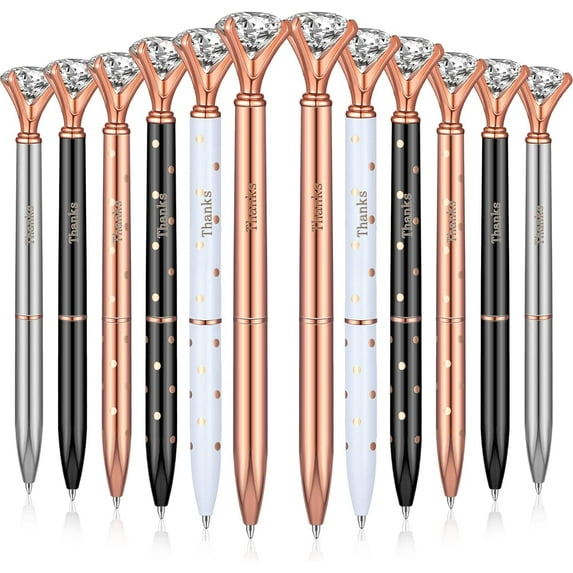 - Elegant Aesthetics: Each pen features a diamond-shaped decoration on the cap and metallic luster, enhanced by "thanks" printing for added meaning.